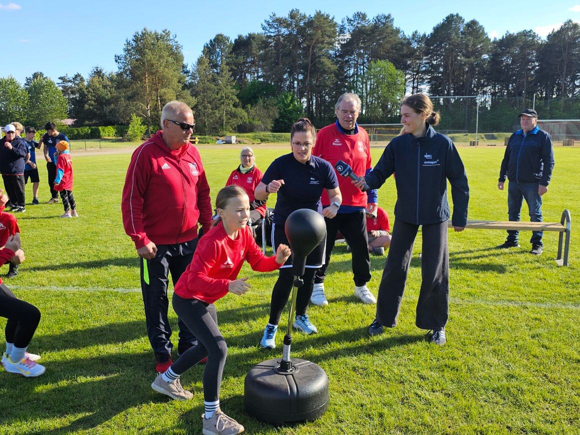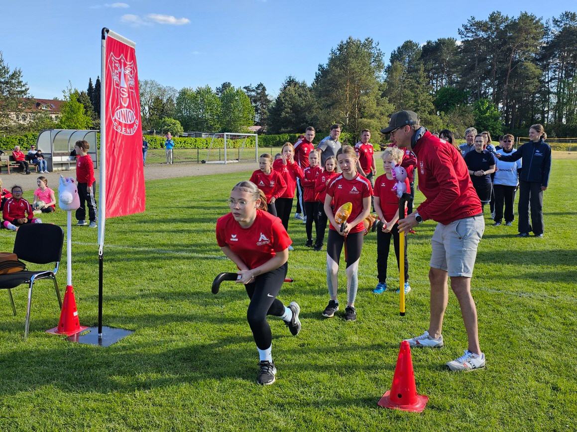 Dazu galt es, einen Fünfkampf zu bestreiten. Je drei Starter von jeder Union-Abteilung gingen auf den Parcours, der gleichermaßen Kraft und Geschicklichkeit abverlangte, darunter NDR-Moderatorin Jule Pieschel. Fünf Minuten Zeitvorgabe waren einzuhalten, nach 4 Minuten und 41 Sekunden war der letzte Wettkämpfer unter dem Jubel der Zuschauer im Ziel.