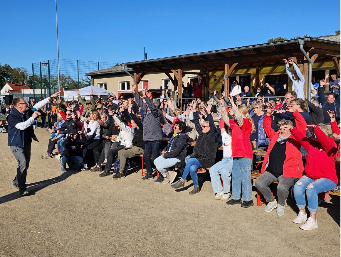 NDR-Team und Vereinsvorstand zeigten sich gleichermaßen begeistert von der Volksfeststimmung. Noch einmal schlug die Stimmung hohe Wellen, als Kathrin Kommer vom Marketing der Volksbanken Raiffeisenbanken Mecklenburgische Seenplatte und Jana Brandt aus der Neustrelitzer Filiale des Finanzunternehmens den Scheck über 2000 Euro an den Vereinsvorsitzenden Martin Linke überreichten.